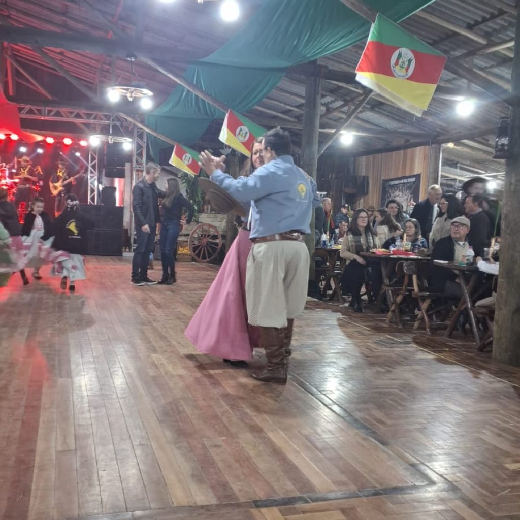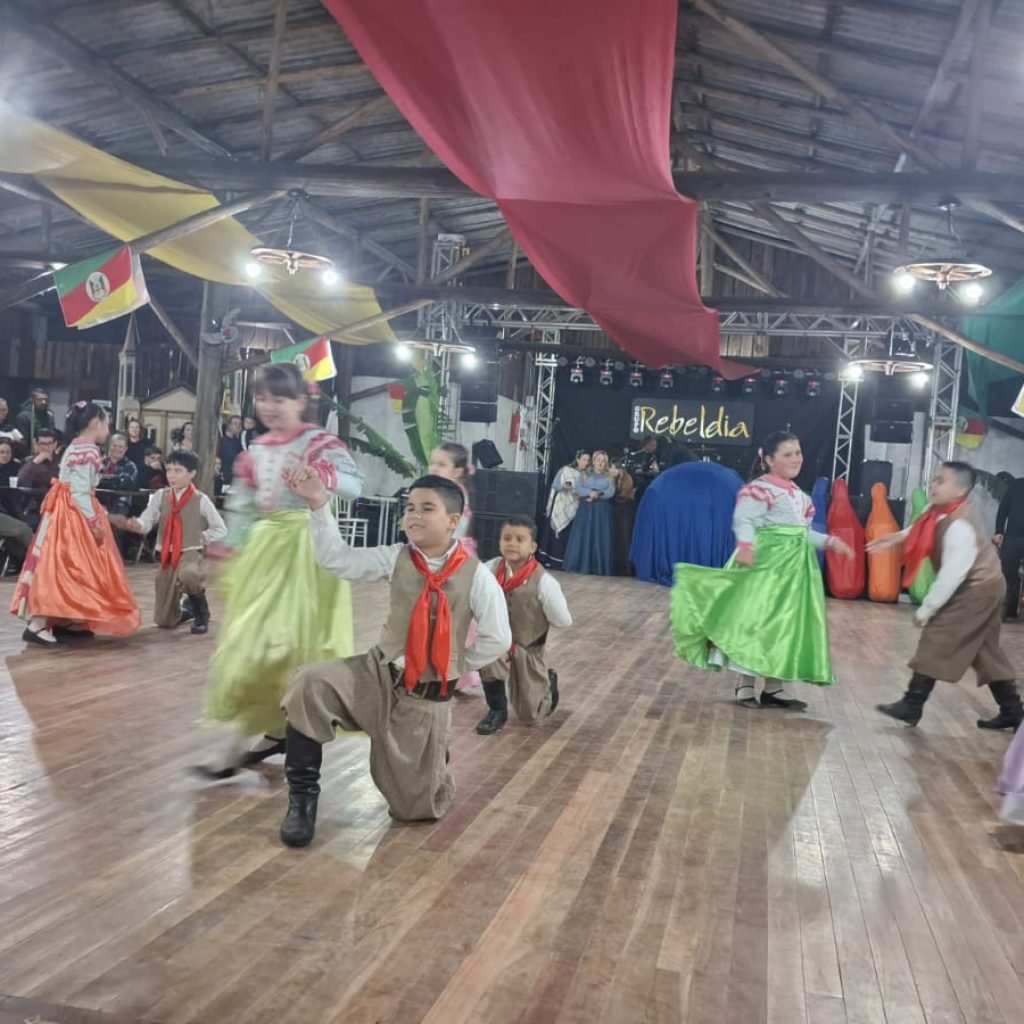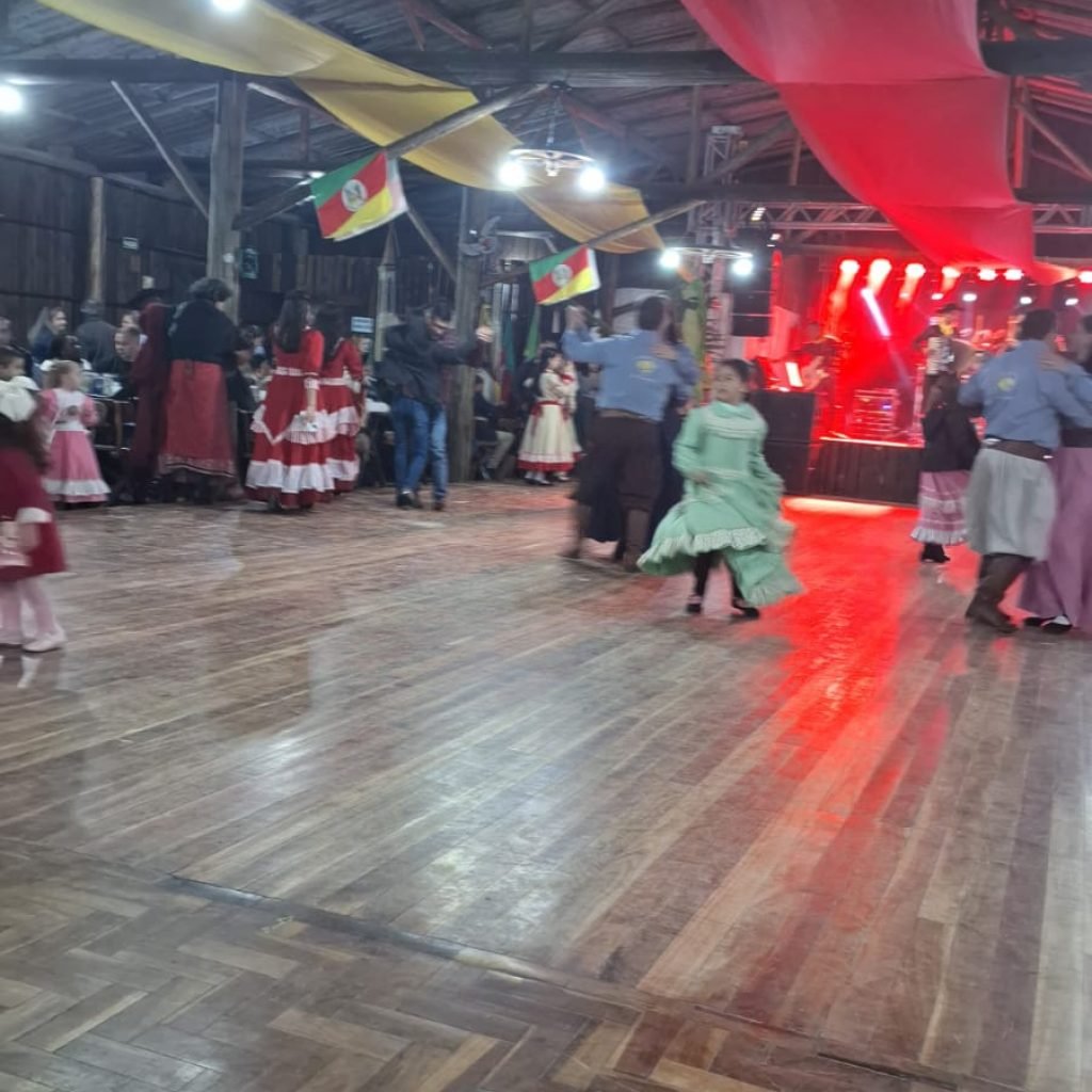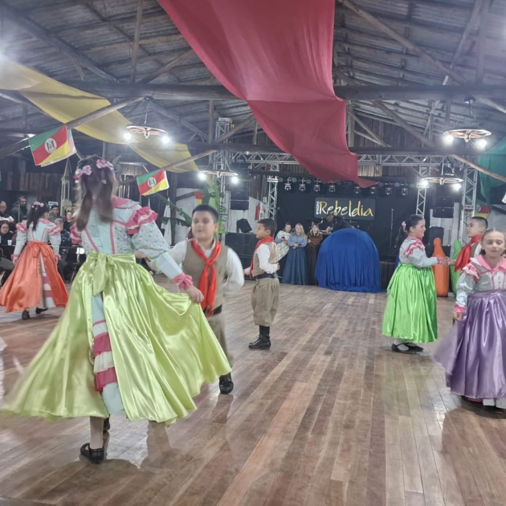 Ao som do grupo Rebeldia, que embalou a festa com clássicos da música gaúcha, o ambiente foi tomado por danças, aplausos e muita animação. Famílias inteiras se reuniram para celebrar as raízes, acompanhadas do tradicional churrasco e da hospitalidade típica do povo gaúcho.