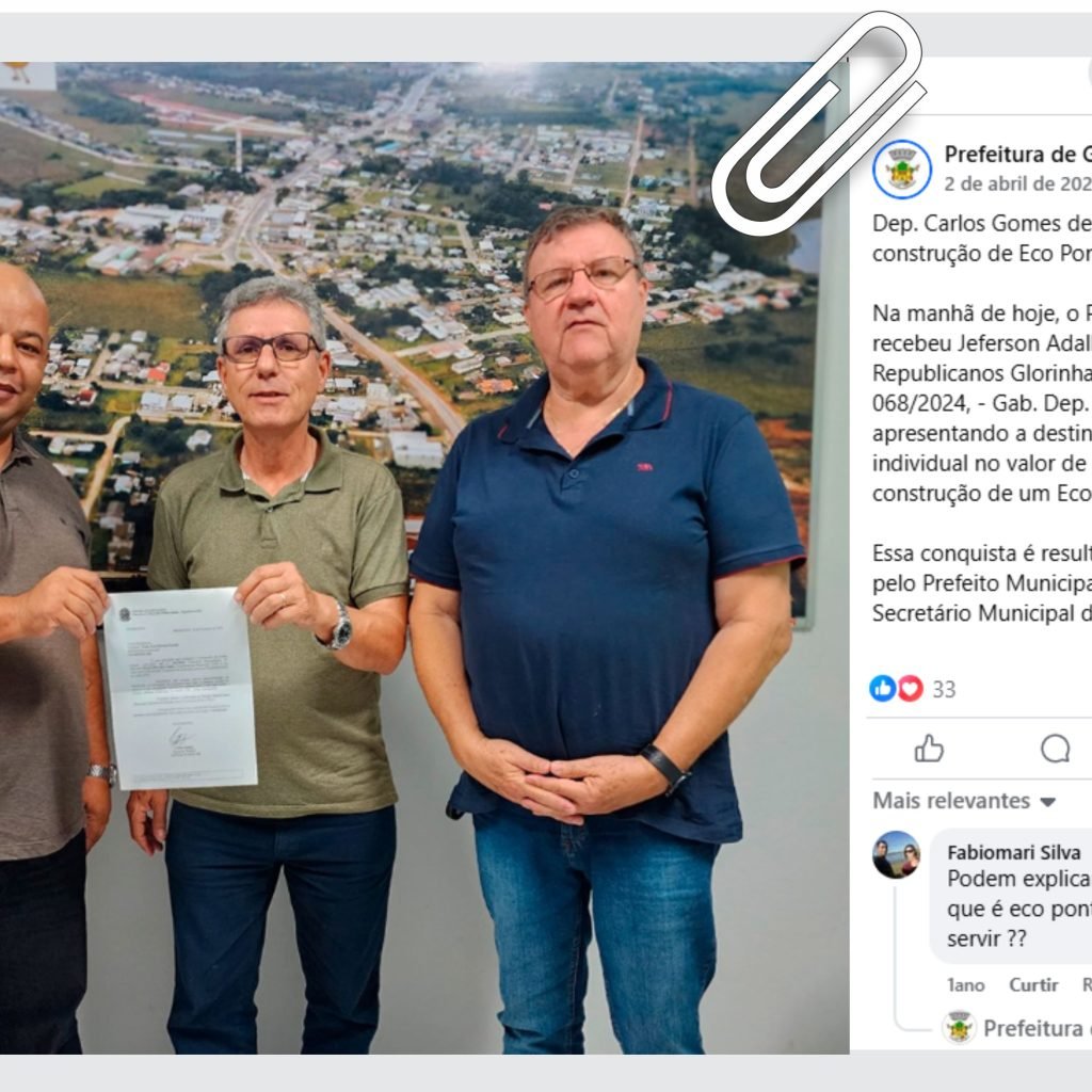 A destinação da verba foi formalizada em 2 de abril de 2024, quando o então prefeito Paulo Corrêa recebeu o presidente do Republicanos de Glorinha, Jeferson Adalberto Goulart, que entregou oficialmente o ofício emitido pelo gabinete do deputado. Na ocasião, a Prefeitura publicou a informação em suas redes sociais.